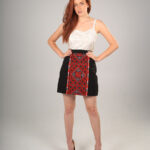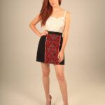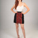 A Handmade mini skirt, made from woven Polyester Spandex, this skirt features vertical front embroidery and back zipper. 10% of each purchase will be donated to NGOs to run programs that would empower women in Australia to enter the fashion industry and finding employment.