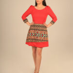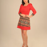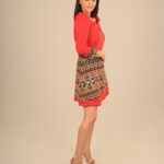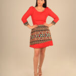 The red embroidery dress is made from cotton/nylon red fabric and silk embroidery round A-Line skirt featuring a scoop neckline, Gigot sleeve with Embroidered cuffs and an asymmetrical hem 10% of each purchase will be donated to NGOs to run programs that would empower women in Australia to enter the fashion industry and finding employment.