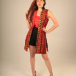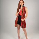 The Red vest is made from our signature silk red embroidery from the front and diamond print 100% cotton fabric from the back. featuring a black Qipao collar, sleeveless and long side slits. 10% of each purchase will be donated to NGOs to run programs that would empower women in Australia to enter the fashion industry and finding employment.